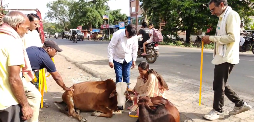 बड़वाह गो माताओं को सड़क दुर्घटना से बचाने के लिए बड़वाह नगर पालिका अध्यक्ष राकेश गुप्ता पार्षदों गो सेवक सोनाली पवांर की टीम के द्वारा रेडियम बेल्ट बांधे गए। रेडियम बेल्ट पूर्णिमा हॉस्पिटल और जनपद पंचायत के सामने बैठी गोमाताओ को बांधे गए नगर पालिका अध्यक्ष राकेश गुप्ता ने बताया कि सड़क दुर्घटना से बचाने के लिए गौमाताओं को रेडियम बेल्ट बांधे गए जिसके कारण रात में गो माताओं के साथ होने वाली दुर्घटना को कम किया जा सके । नपा अध्यक्ष ने बताया कि बड़वाह के कृषि उपज मंडी के परिसर में खाली पड़े टीन शेड में रोड पर बैठने वाली गो माताओं को भेजा जाएगा । चुकी अभी टिन शेड के आसपास की सफाई होने के बाद में गौसेवकों समाजसेवियों नपा की टीम के द्वारा निरीक्षक कर उचित व्यवस्था करी जाएगी । नपा अध्यक्ष ने बताया कि हमारे द्वारा जिला कलेक्टर एवं एसडीएम को शहर या आसपास में खाली पड़ी गोचर भूमि के लिए आवेदन किया गया जैसे है जिला कलेक्टर और एसडीएम से गोचर भूमि के लिए जमीन का आवंटन होगा उसके बाद वहां गौ शाला का निर्माण किया जाएगा एवं सड़कों पर बैठी गो माताओं को वहा भेजा जाएगा ।
